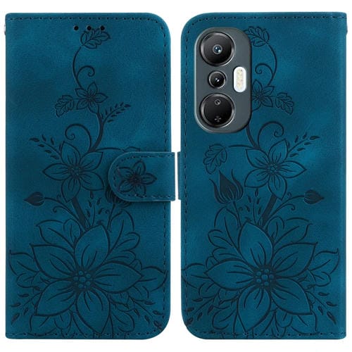 Funda de Cuero En Relieve para Infinix Hot 20S Lily para Teléfono (Azul Oscuro)