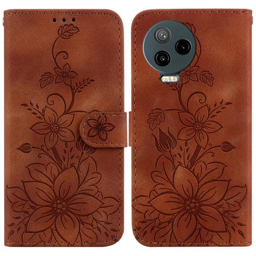Estuche para Teléfono Infinix Note 12 Pro 4G y Note 12 (2023) Cuero con Relieve de Lirio (Marrón)