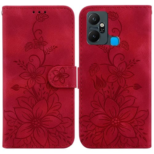Estuche para Teléfono Infinix Smart 6 Plus Lily de Cuero en Relieve (Rojo)
