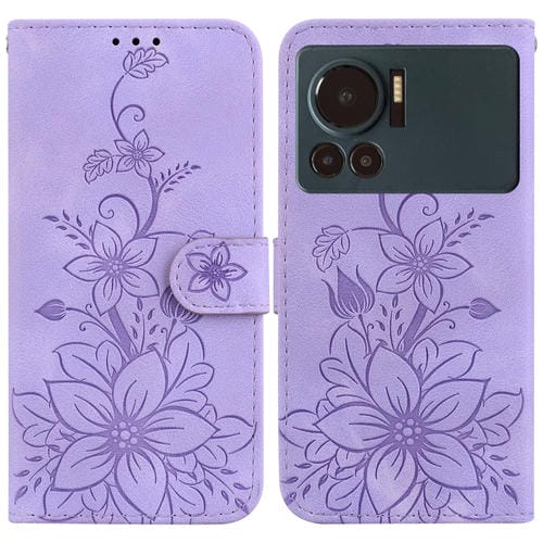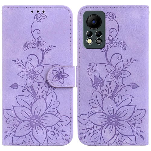 Estuche para Teléfono Infinix Zero 20 X6821 Cuero con Relieve de Lirio (Púrpura)