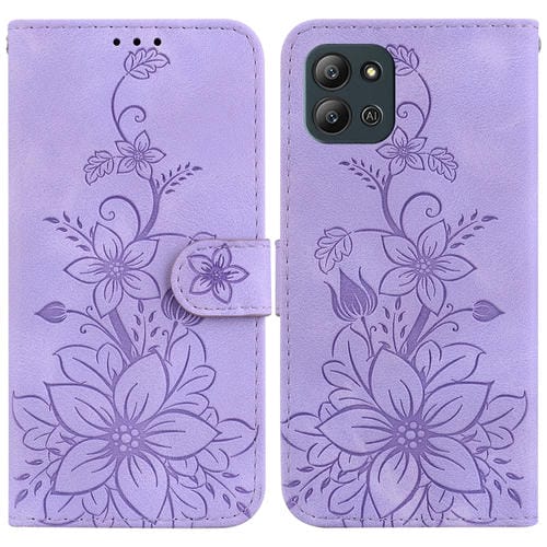 Funda de Cuero para Infinix Hot 11 2022 con Relieve de Lirio (Púrpura)