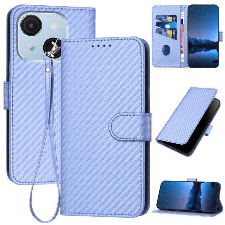 Funda de Cuero con Hebilla de Fibra de Carbono para Teléfono Itel A50C Yx0070 con Cordón (Azul Claro)
