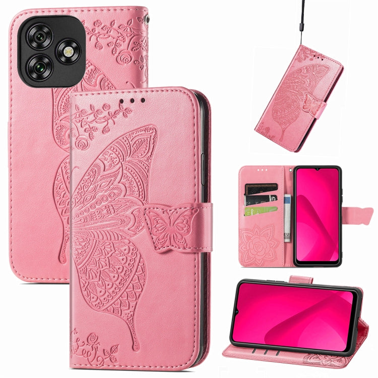 Funda de Cuero con Relieve Mariposa y Flor para Oukitel C53 (Rosa)