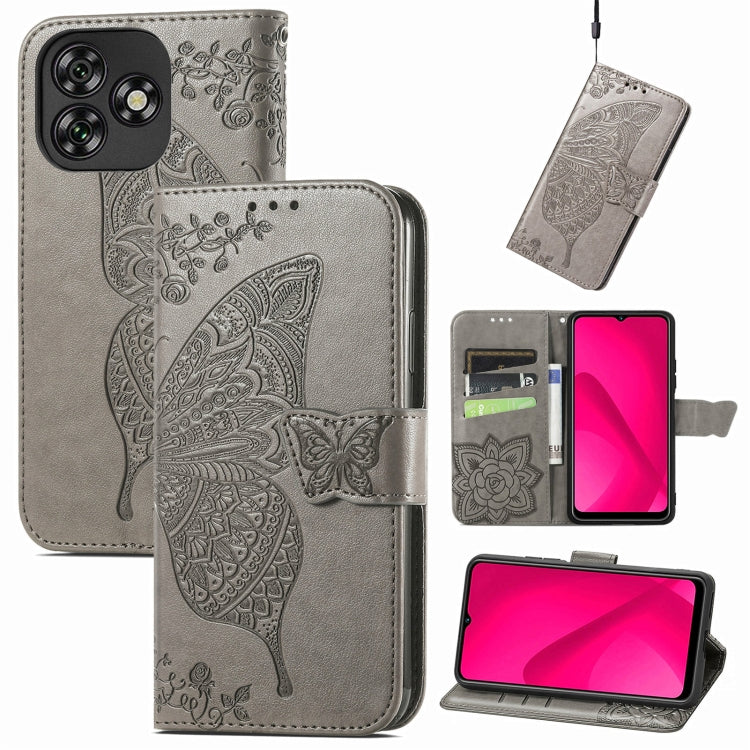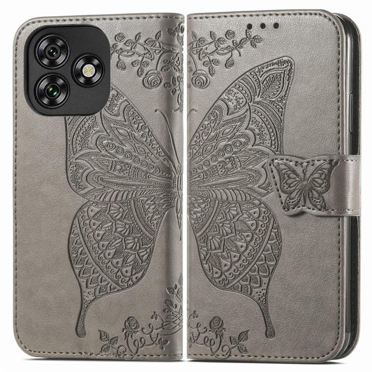 Funda de Cuero con Relieve Mariposa y Flor para Oukitel C53 (Gris)