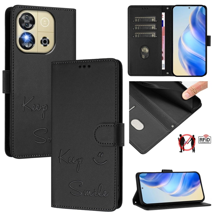 Funda de Cuero Rfid para Teléfono Itel A80 4G con Relieve Sonriente (Negra)