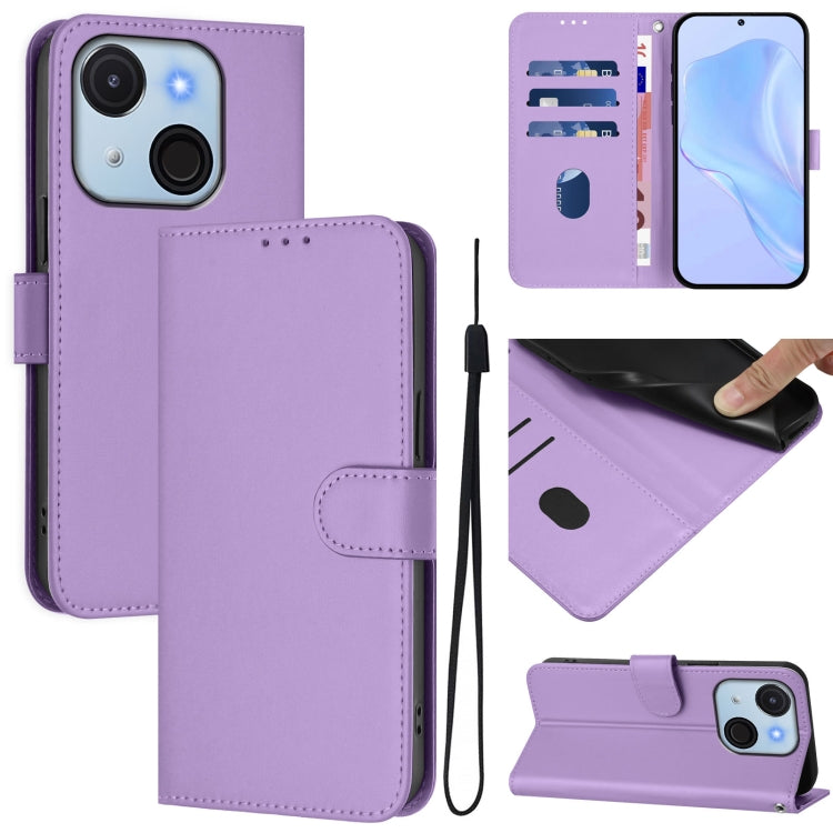 Funda de Cuero Rfid con Relieve Sonriente para Teléfono Itel A50C (Morado Claro)