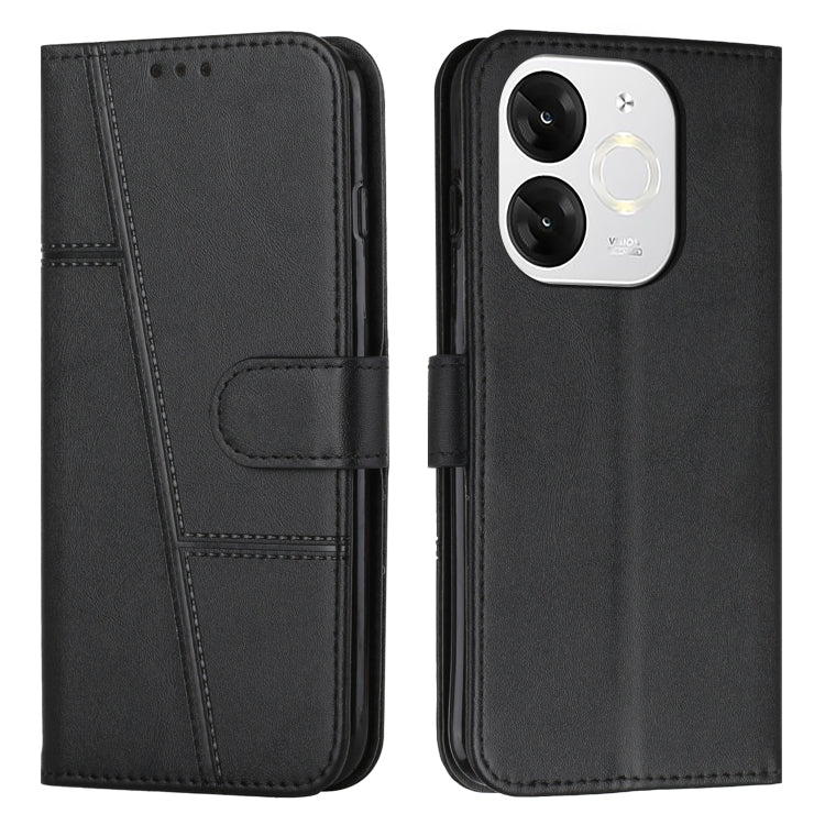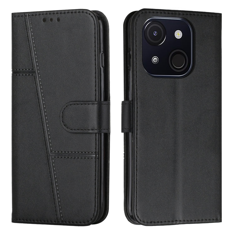 Funda de Cuero Textura de Becerro con Costuras para Teléfono Itel P65 (Negro)
