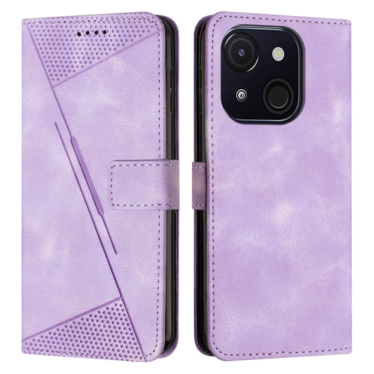 Funda de Cuero Triángulo para Teléfono Itel A50C Dream con Cordón Largo (Morado)