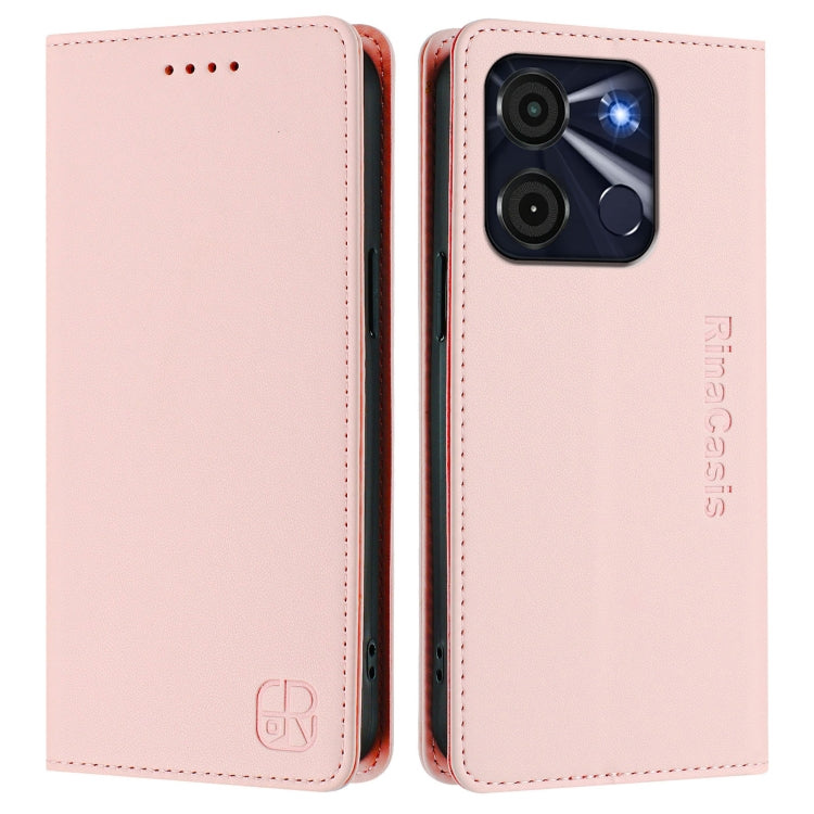 Funda de Cuero Rfid para Teléfono Itel A48 Rc01 con Doble Pliegue y Succión Magnética (Rosa)