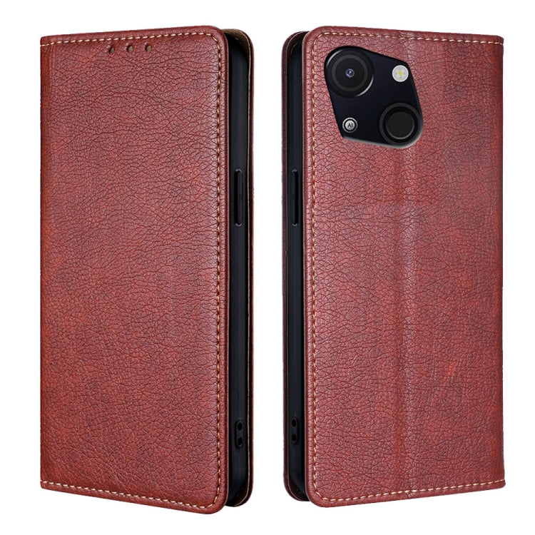 Funda de Cuero para Teléfono Itel S25 con Tapa Magnética y Tacto Ultrafino (Marrón)