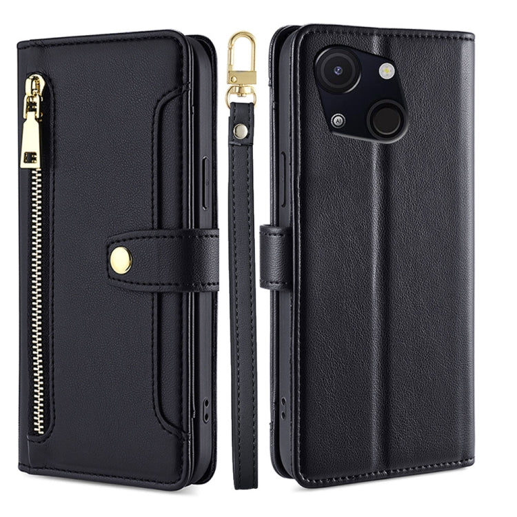Funda de Cuero con Cremallera y Textura de Oveja para Teléfono Itel A50C 4G (Negra)