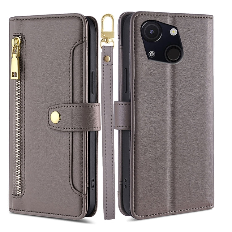 Funda de Cuero Tipo Billetera con Cremallera y Diseño de Oveja para Itel A50C 4G (Gris)