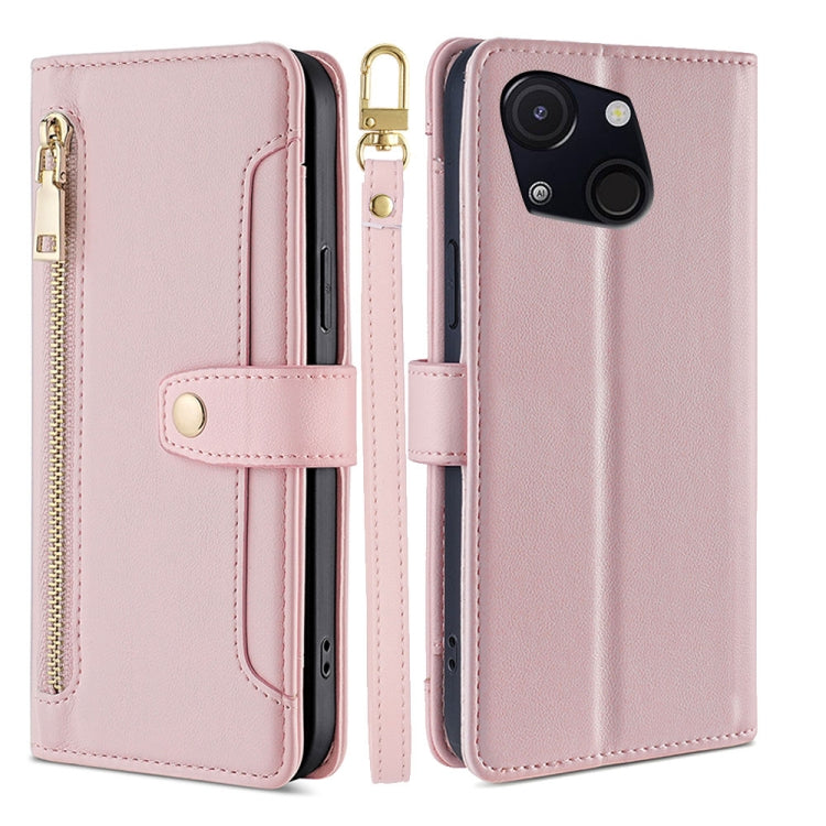 Funda de Cuero con Cremallera y Diseño de Oveja para Teléfono Itel A50C 4G (Rosa)