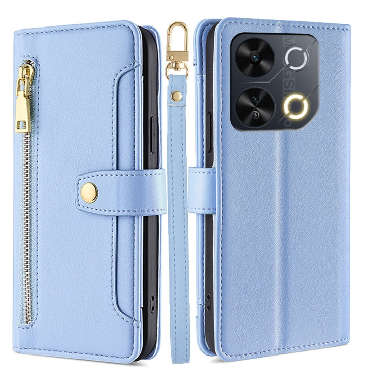 Funda de Cuero con Cremallera y Textura de Oveja para Teléfono Itel A50C 4G (Azul)