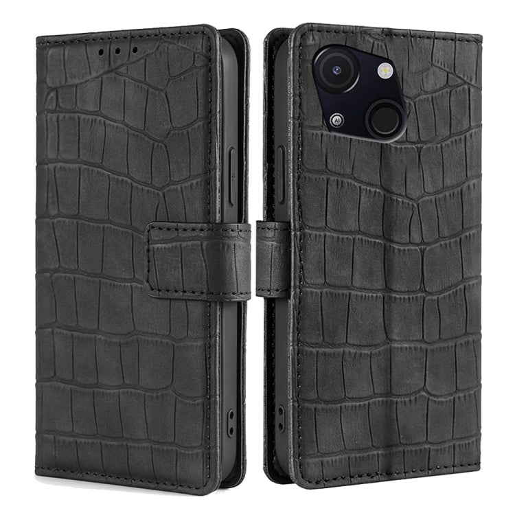 Funda de Piel con Cierre Magnético para Teléfono Itel A50C 4G (Negra) Diseño Cocodrilo