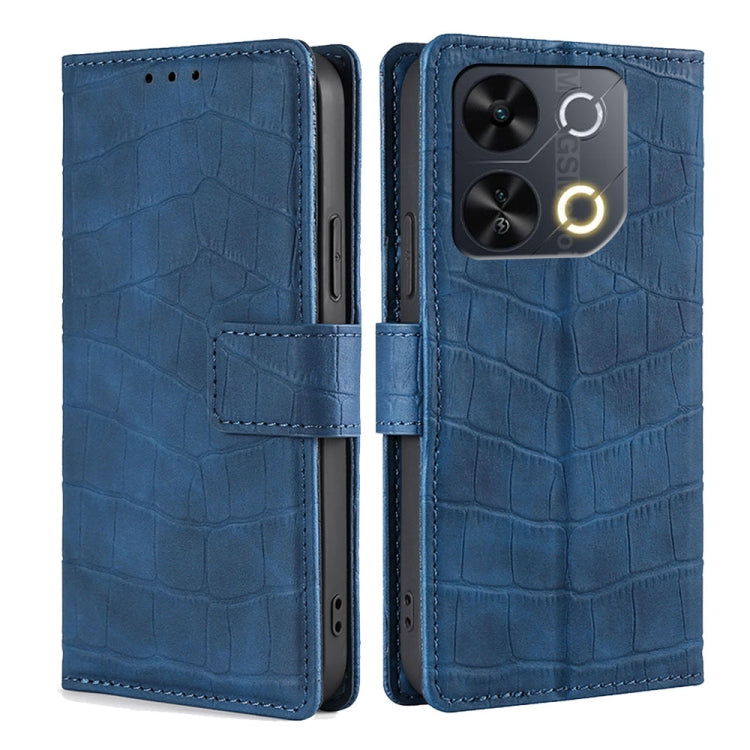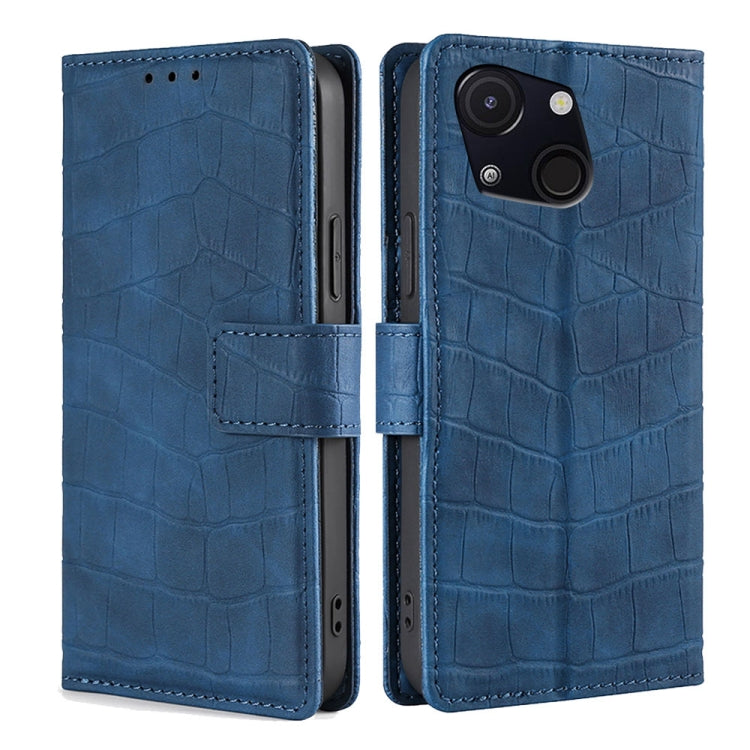 Funda de Piel con Cierre Magnético para Teléfono Itel A50C 4G (Azul) Diseño Cocodrilo