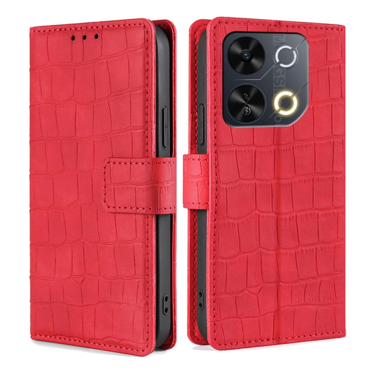 Funda de Piel con Cierre Magnético para Teléfono Itel P65 (Rojo) con Tacto de Piel de Cocodrilo