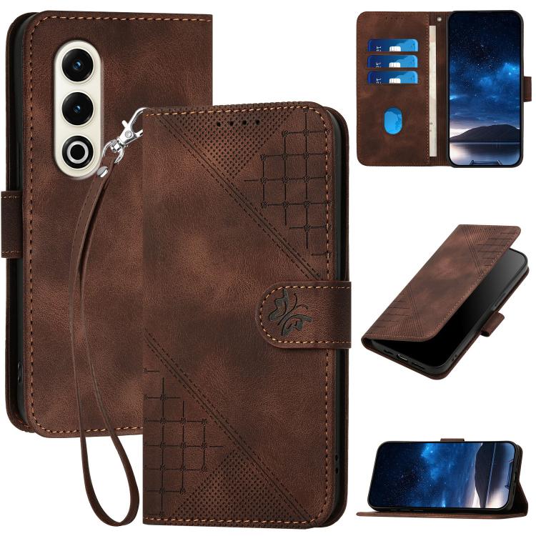 Funda de Cuero Itel A80 con Diseño En Relieve Mariposa y Cuadrícula con Cordón (Café)