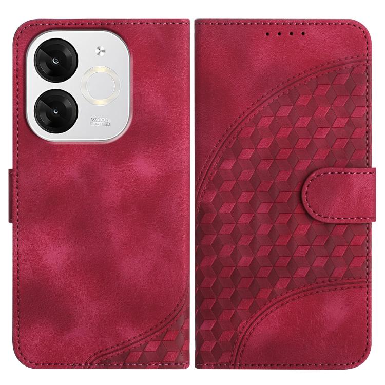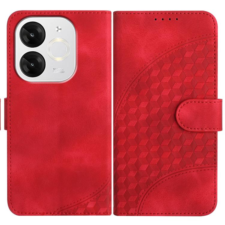 Funda de Cuero Itel S25 Ultra con Diseño Mariposa en Relieve y Cuadrícula con Cordón (Rojo)