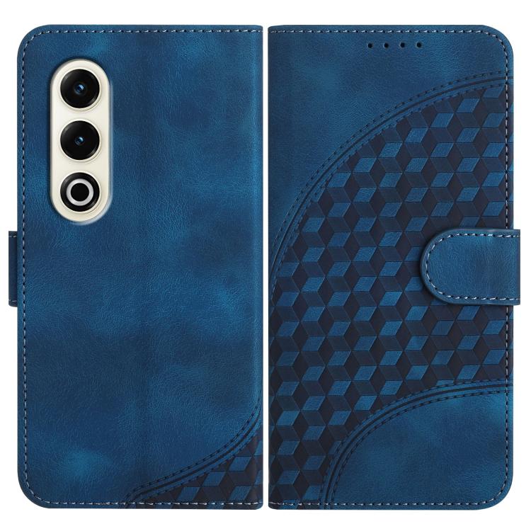Funda de Cuero Itel A80 con Diseño en Relieve Mariposa y Cuadrícula con Cordón (Azul Oscuro)