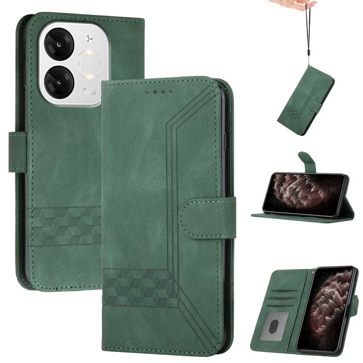 Funda de Cuero con Tapa y Tacto de Piel Cúbica para Teléfono Itel A80 (Verde)