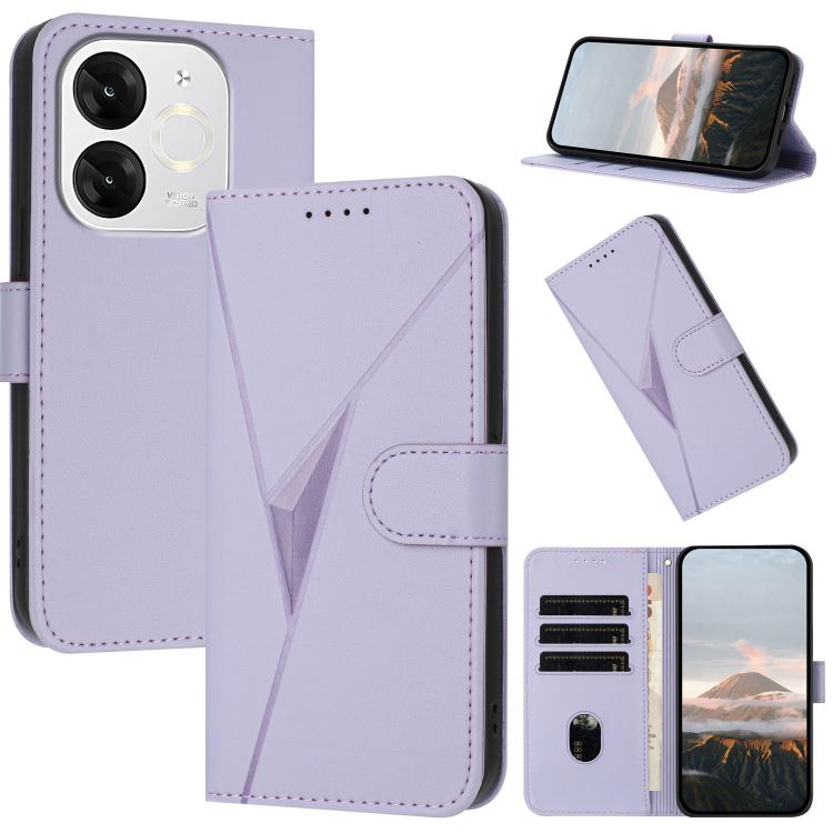 Funda de Cuero con Cierre de Hebilla y Diseño Triangular para Teléfono Itel A50C (Morado Claro)