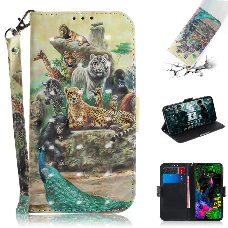 Funda de Cuero con Patrón 3D para LG G8 Thinq, Tapa Horizontal, Soporte, Ranuras y Billetera (Zoo)