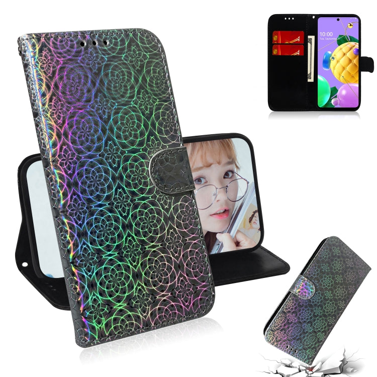 Funda de Cuero PU para LG K62 / K52 / Q52 con Hebilla Magnética, Soporte, Ranuras y Cordón (Plateado)