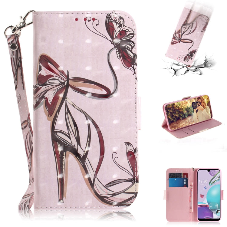 Estuche de Cuero Abatible Horizontal para LG K31 con Dibujo 3D, Soporte, Ranuras y Cordón (Mariposa)