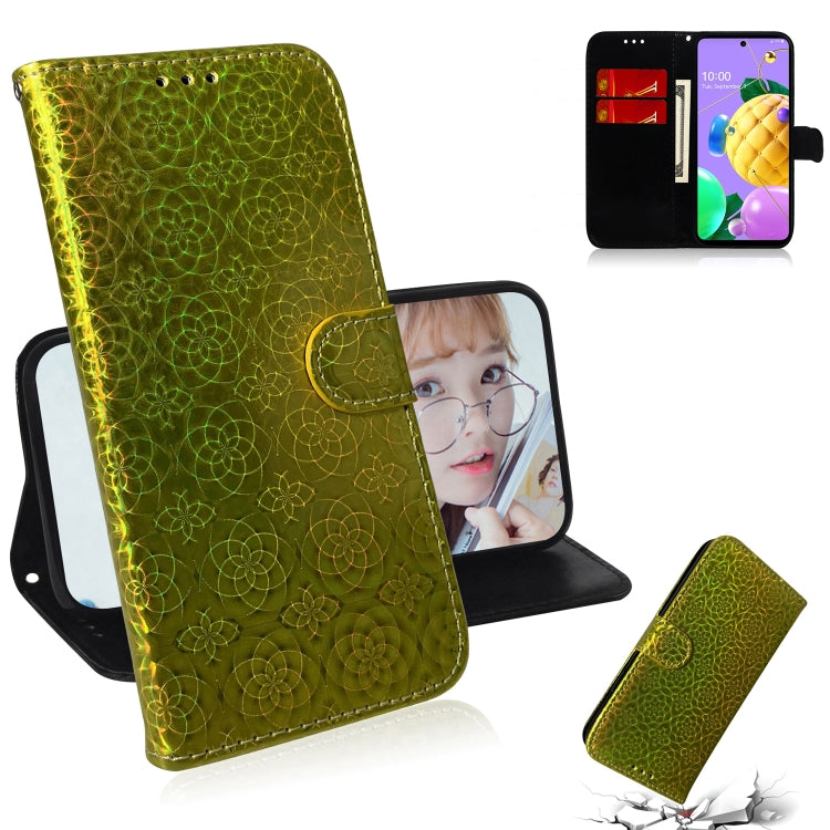 Funda de Cuero PU para LG K62 K52 Q52 con Hebilla Magnética, Soporte, Ranuras y Cordón (Dorado)