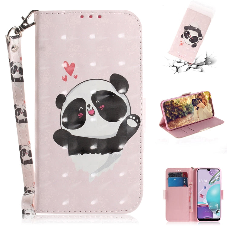 Funda de Cuero Abatible Horizontal para LG K31 con Dibujo 3D, Soporte, Billetera y Cordón (Heart Panda)