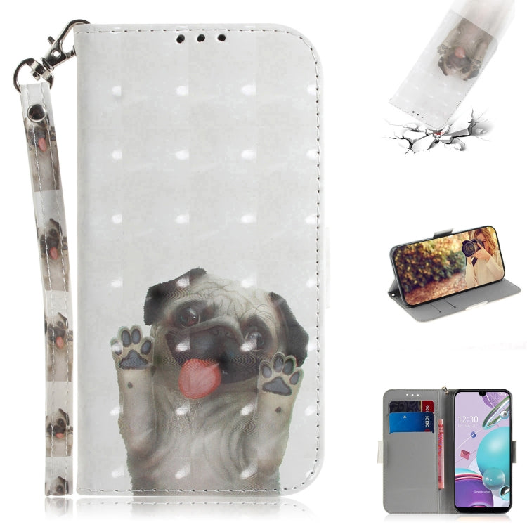 Funda de Cuero Abatible Horizontal para LG K31 con Dibujo 3D, Soporte, Ranuras y Cordón (Pug)