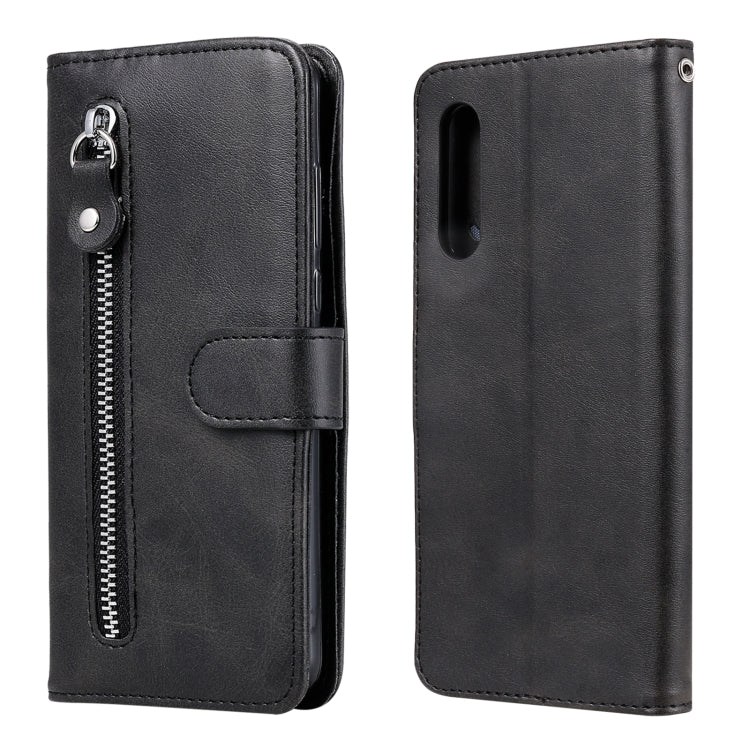 Estuche de Cuero para LG Velvet con Cierre Cremallera, Soporte, Ranuras y Billetera (Negro)