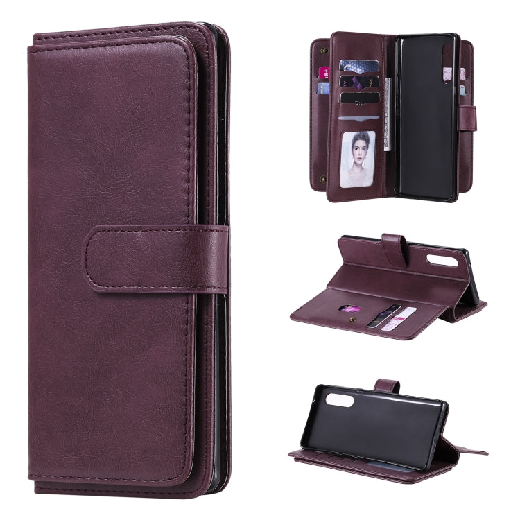 Funda de Cuero para LG Velvet G9 con Hebilla de Cobre Magnética, 10 Ranuras, Soporte y Marco (Rojo Vino)