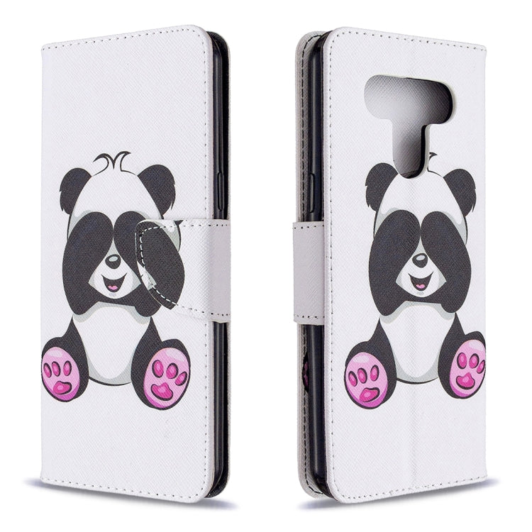 Estuche de Cuero Abatible Horizontal para LG K51 con Soporte, Ranuras para Tarjetas y Billetera (Panda)