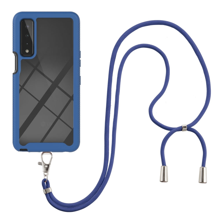Funda Protectora para LG K22 Starry Sky Serie PC + TPU a Prueba de Golpes con Correa de Cuello (Azul)