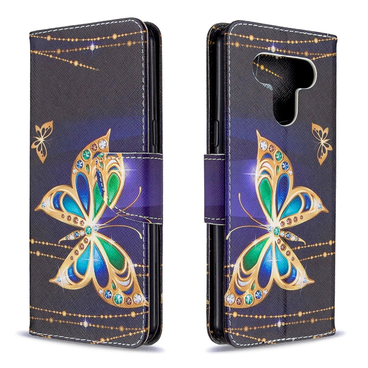 Estuche Cuero Abatible Horizontal LG K51 con Soporte, Ranuras y Billetera (Mariposas)