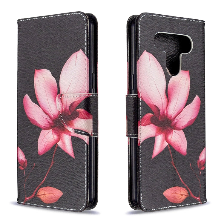 Estuche de Cuero Abatible Horizontal para LG K51 con Soporte, Ranuras para Tarjetas y Billetera (Lotus)