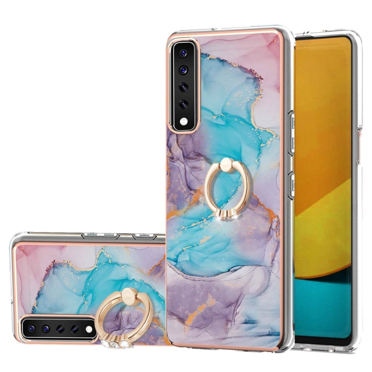 Funda LG Stylo 7 4G TPU Patrón Galvanoplastia a Prueba de Golpes con Soporte Anillo (Mármol Azul)