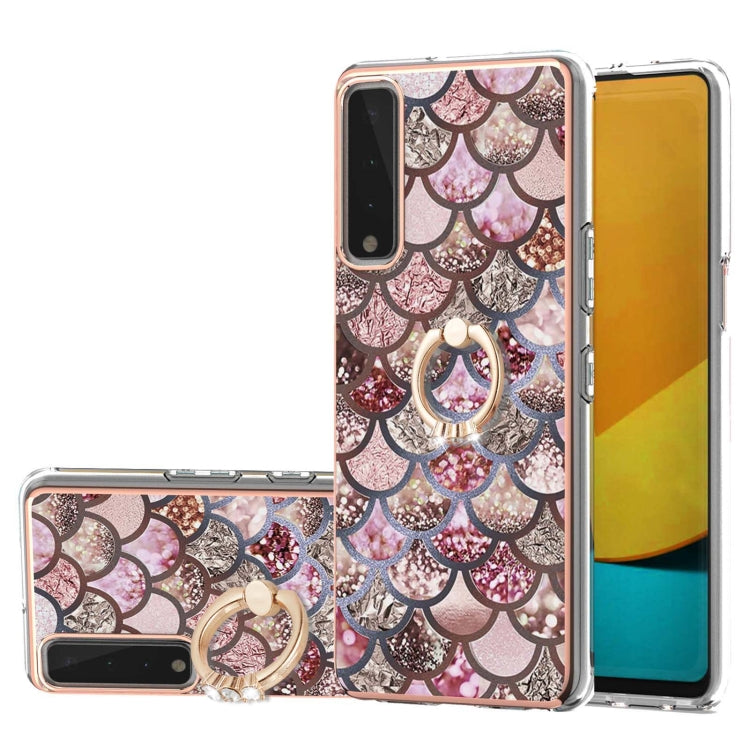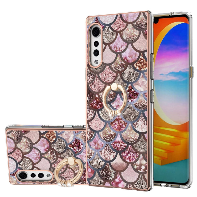 Funda TPU LG Velvet 4G Velvet 5G G9 con Patrón Galvanoplastia y Soporte Anillo Diamantes (Escamas Rosas)