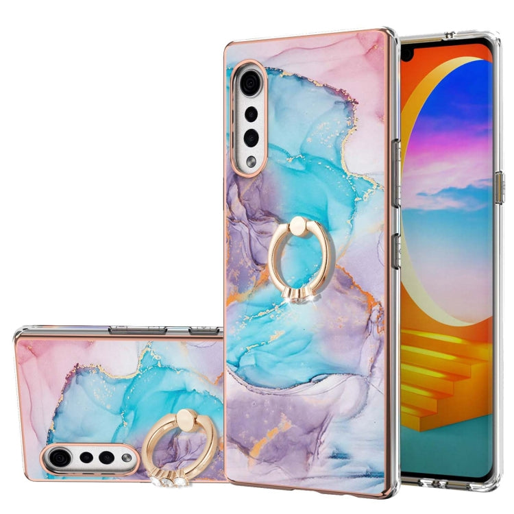 Funda TPU LG Velvet 4G Velvet 5G G9 Patrón Galvanoplastia Soporte Anillo Diamantes (Mármol Azul)