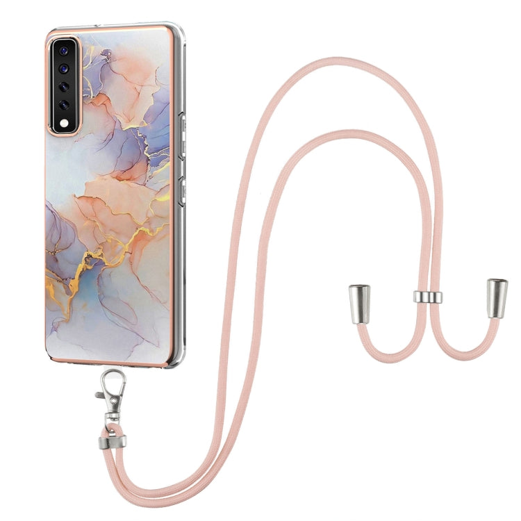 Funda TPU para LG Stylo 7 4G con Patrón Galvanoplastia IMD y Cordón de Cuello (Mármol Azul)