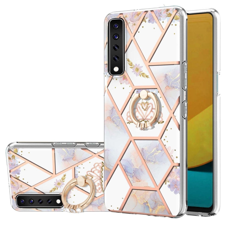 Funda TPU LG Velvet Electroplating Patrón Flores Mármol Soporte Anillo Diamantes (Flor Rosa)