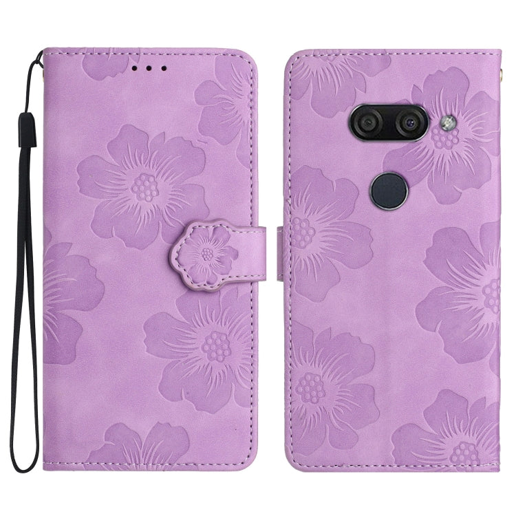 Funda de Cuero para LG K61 con Estampado de Flores en Relieve (Púrpura)