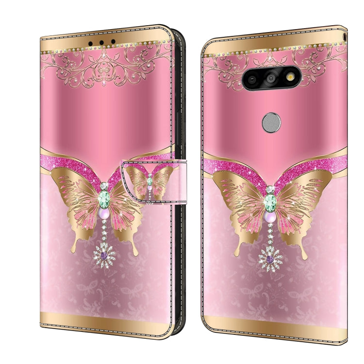 Funda Protectora de Cuero para LG K31 Crystal 3D a Prueba de Golpes (Mariposa de Diamante Rosa)