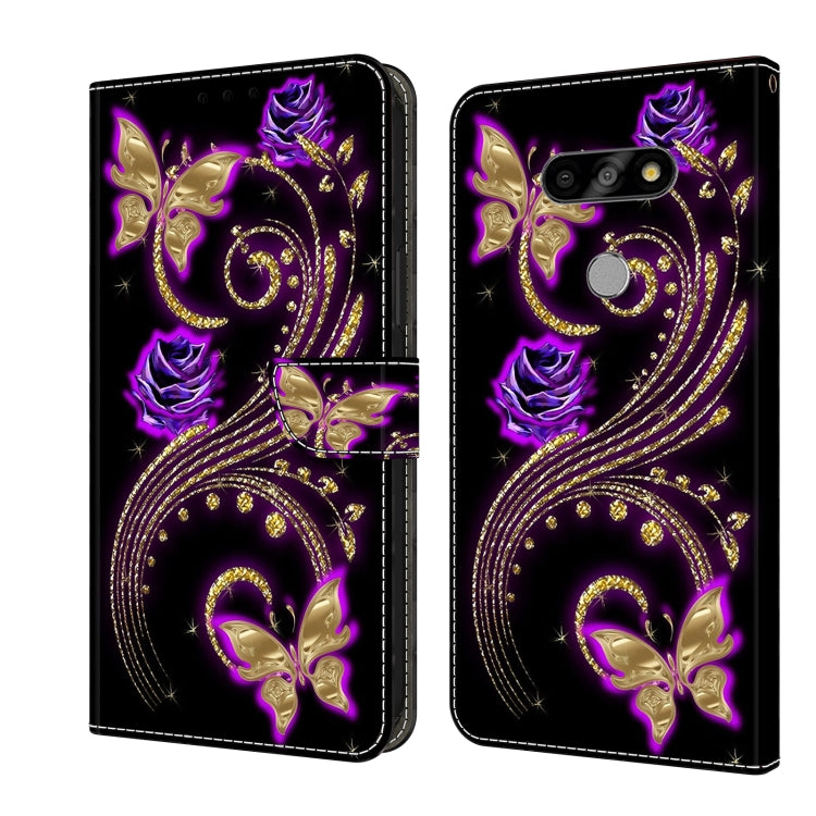 Funda Protectora de Cuero para LG Stylo 6 / K71 Crystal 3D a Prueba de Golpes (Mariposa Púrpura)