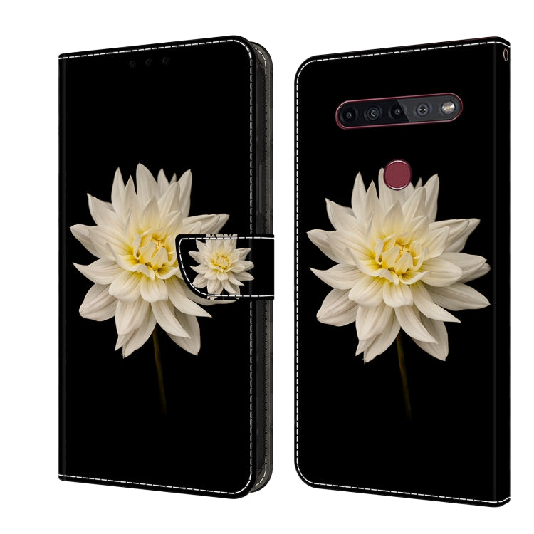 Funda Protectora de Cuero para LG V60 Thinq 5G Crystal 3D a Prueba de Golpes (Flor Blanca)