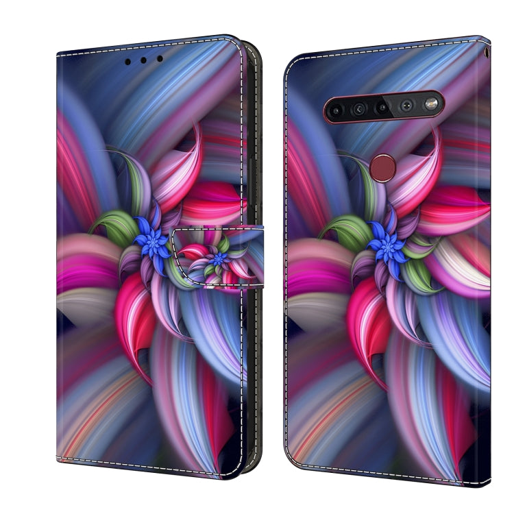 Funda Protectora de Cuero para LG Q92 5G Crystal 3D a Prueba de Golpes (Flor Colorida)