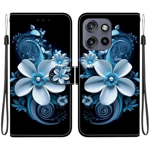 Funda de Cuero con Dibujo y Textura de Cristal para Motorola Moto G75 5G (Lotus)