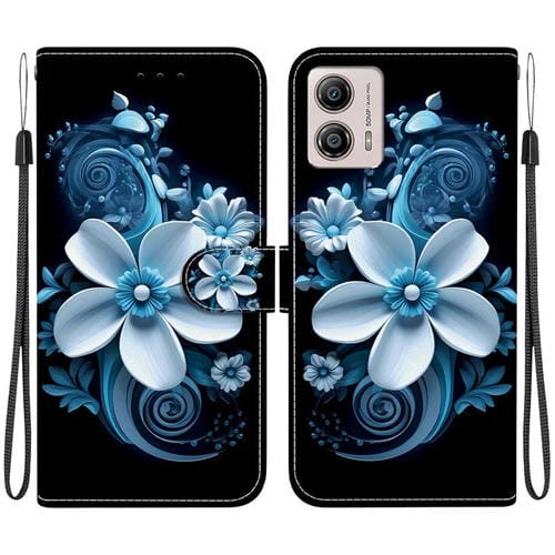 Funda de Cuero con Dibujo y Textura de Cristal para Motorola Moto G13/G23/G53 (Orquídea Negra)